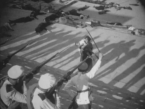 通过这种方式,爱森斯坦创造了一个群体主人公,巧妙地利用这一策略构建了一副“群众参与历史,历史走入群众的时代”的图景。后来,爱森斯坦对于典型人物和群众主人公的使用使得他片中的角色得到了一种新的批评,一种关乎个人身份与集体身份,以及个人在历史创作中作用的,具有深远哲学意义的批评方式。