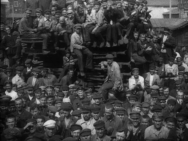 1925年,爱森斯坦创作了他的第一部作品《罢工》(Strike, 1925)。这部影片昭示着他最重要的电影主题——历史,也表现了他对探索电影新媒体表现手段的实验的不懈追求。《罢工》的故事背景设置在1903年,用来纪念顿河畔罗斯托夫的一系列罢工事件,电影以库里肖夫(Lev Kuleshov)概括的蒙太奇原理、构成主义美学和后来被卡米拉·格雷(Camilla Gray)称为“俄罗斯伟大的视觉和造型艺术实验”的其他元素为基础,融入了爱森斯坦早期在戏剧领域的努力。这部将富有感染力的组合镜头、视觉隐喻、快速剪辑与一组密集的互文本暗示结合在一起的影史杰作,也在批评类文献中恰当地描述为爱森斯坦早期“杂耍蒙太奇”的最佳例证。